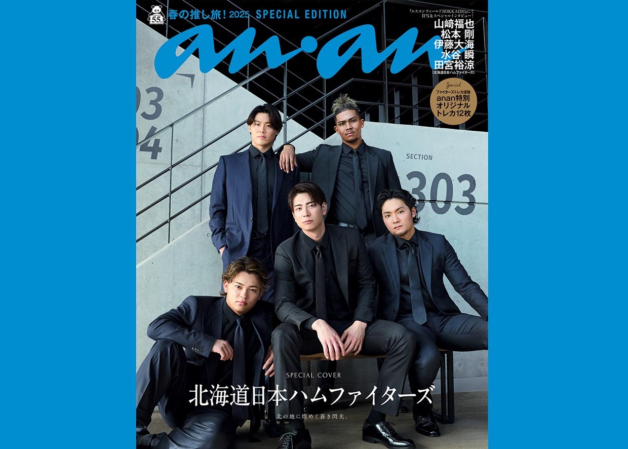 3月26日に発売されるスペシャルエディション版の表紙を飾る。プロスポーツチームの選手がユニットで表紙出演するのは同週刊誌では初となる。表紙に加え、10ページのグラビアも掲載されている。本拠地のエスコンフィールド北海道を舞台に貴重なショットが載っている。選手のロングインタビューや北海道ボールパークFビレッジの特集なども掲載されている。ファイターズ公式電子トレカコレクション「ファイターズトレカ」と連動した「ananオリジナルトレーディングカード」も封入されている。