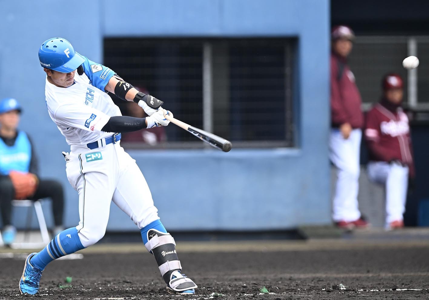 「あのケースは最悪、逆方向の進塁打ができればいいかなと。ボールを長く見て、フォアボールも取れたらいいなと考えていました。試合前には、ボス(新庄監督)から『試合になったらバッティングフォームのことを考えるより、来た球を思い切りしばけ』とアドバイスをいただいて。迷いなく強く振れた結果が、ああいう打球になったのかなと思います」