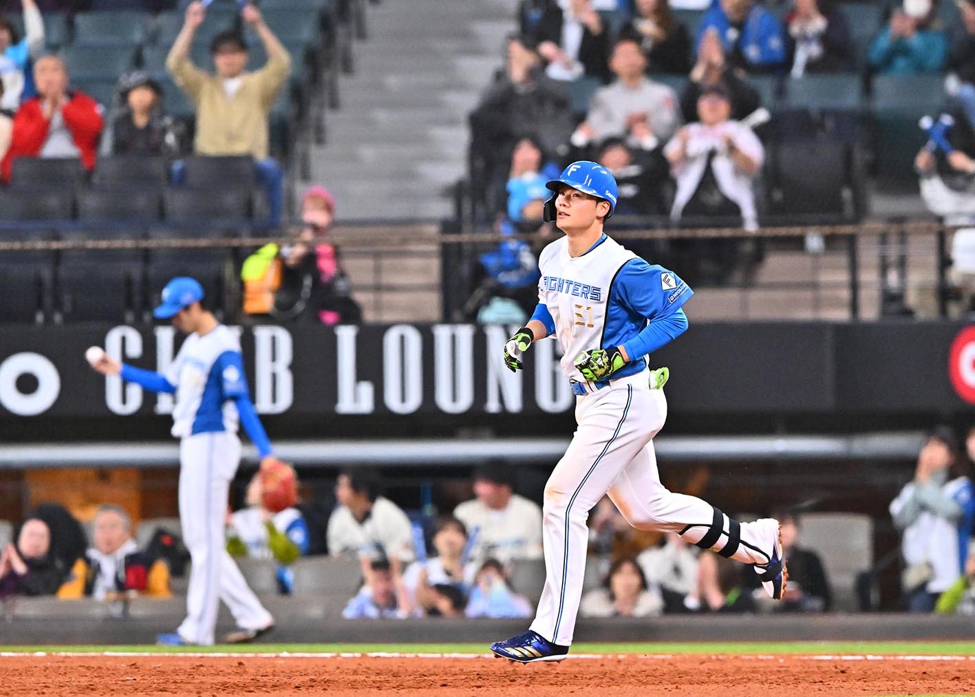 「きのうの夜に、全然ダメだなと思いながら、どうなってんのかなって。きのう、久々にエスコンでやって、去年とカメラの位置も一緒なので、そういうので見比べられたので、あ、こんなに変わっているんだなというのがすごい分かりやすかった。そのおかげできょうは打てたかなという感じです」