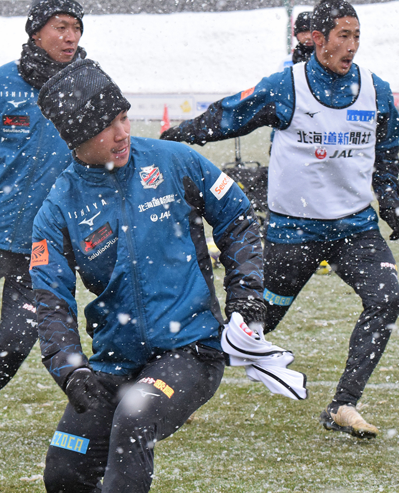 大雪の中で、選手たちの活気ある声が響き渡った。極寒のピッチで最終調整を終えたスパチョークは「きょうは、すごく寒い中でやりましたけどコンディションは問題ない。100%で秋田戦を迎えられると思います」と自信をみなぎらせた。
