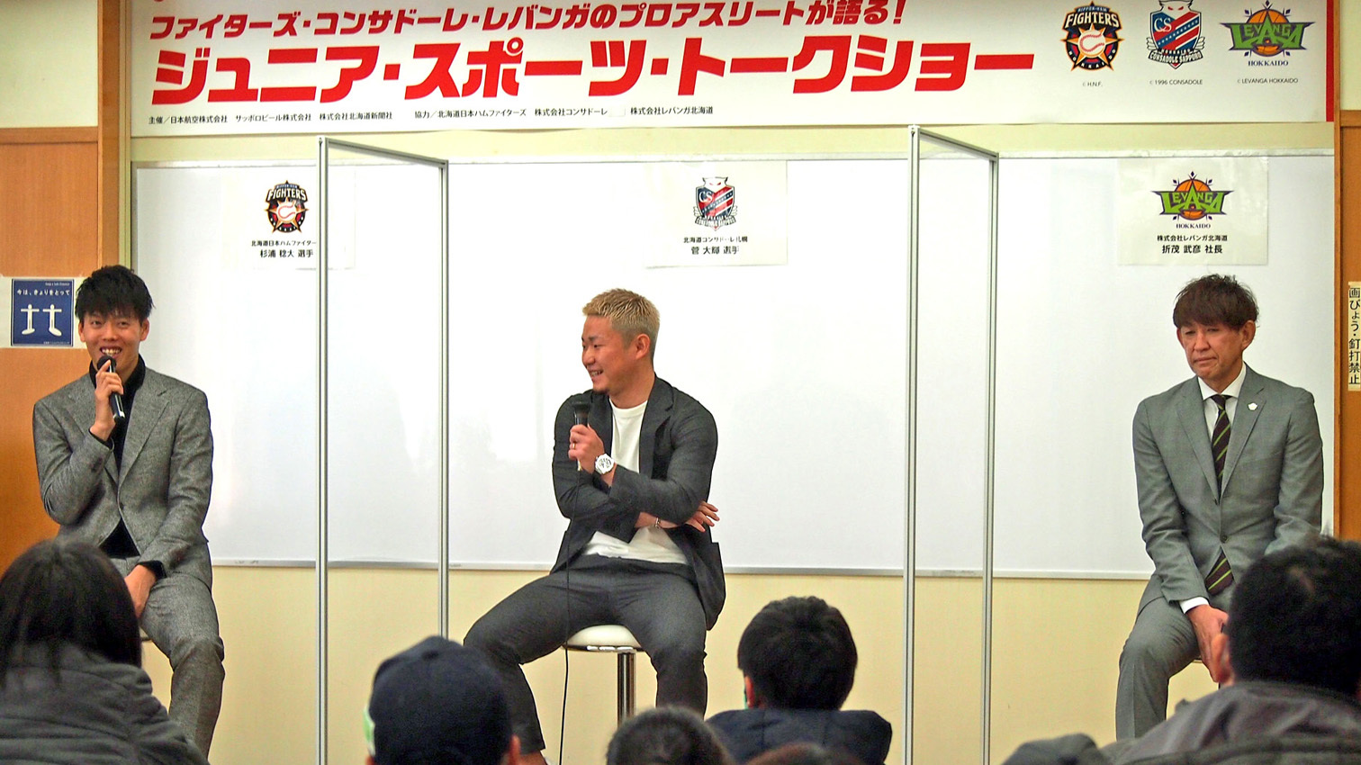 道産子の杉浦が、異業種交流で大きな刺激を受けた。この日のイベントは小学生向けの「ジュニア・スポーツ・トークショー」として行われ、北海道コンサドーレ札幌のFW菅、レバンガ北海道の折茂社長も参加した。