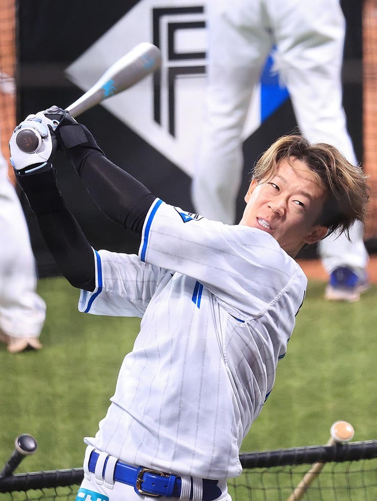 24日にエスコンフィールド北海道で行われた全体練習に参加。野手一本に絞って勝負している今季、目標に掲げている開幕スタメンに向けて、まずは第一関門を突破した。