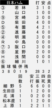 押し出し四球でサヨナラ勝ち 先発の細野が5回0封