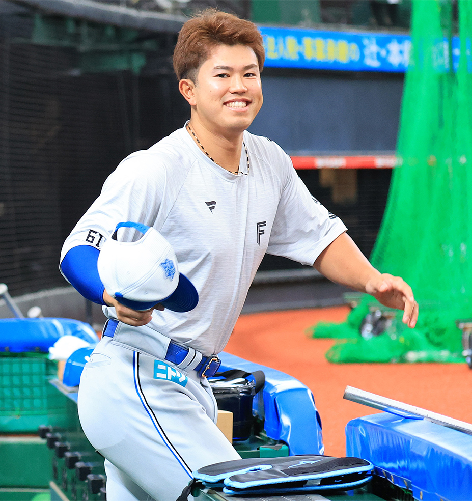 汗ばむような陽気だった前日から一転し、厳しい冷え込みに見舞われた29日のベルーナドーム。試合前練習に臨んだ日本ハムの多くの選手たちも防寒対策を行っていたが、そんな中でも腕を出してプレーしていたのが、半袖を自己のスタイルとする伊藤大海、そして今川優馬の道産子コンビだった。
