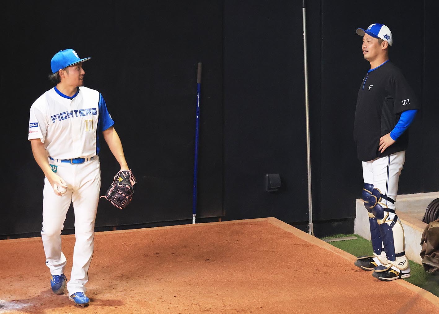 「生え抜きの右ピッチャーでエースは上沢がいた。大海が入ってきた頃、アイツは律義なので『上沢さん、もうやりました?』『上沢さんの後、お願いします』って感じで。上沢を立てるところがあった」。先輩右腕がキャッチボールを終えてから、ボールを受けてもらうのが日課だった。