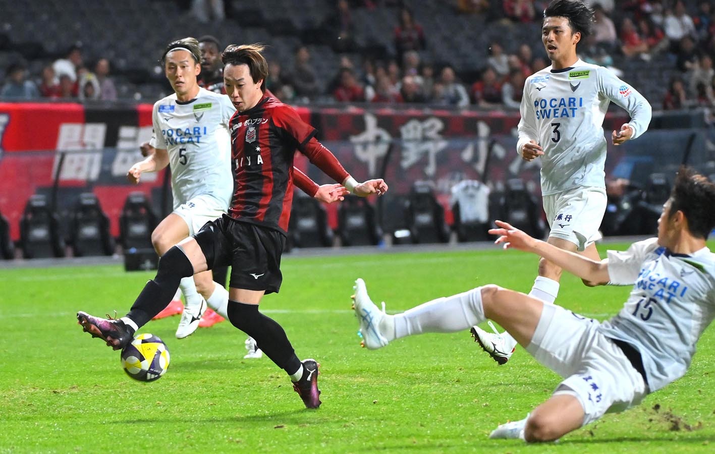 中断時間が長かったこともあり、アディショナルタイムは8分。すると同5分、途中出場のMF長谷川竜也(31)がペナルティーエリア左角付近からクロスを上げ、直前のFKで攻め残っていたDF家泉怜依(25)が執念のヘディングシュート。途中出場のMFスパチョーク(26)、FW金健熙(30)がニアでオトリとなり、ファーサイドから家泉が相手DFの上を行く高さからゴール左上に突き刺した。