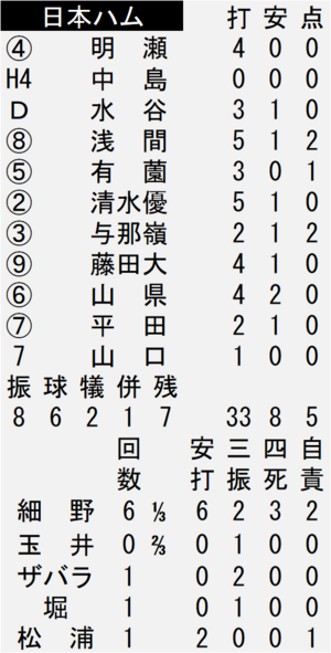 日本ハム2軍はDeNAと敵地・横須賀で対戦し、 延長十回を戦って5-4で競り勝った。先発の細野晴希投手(23)は三回2死から四球を出し、直後の3番・松尾に先制の適時二塁打を浴びた。