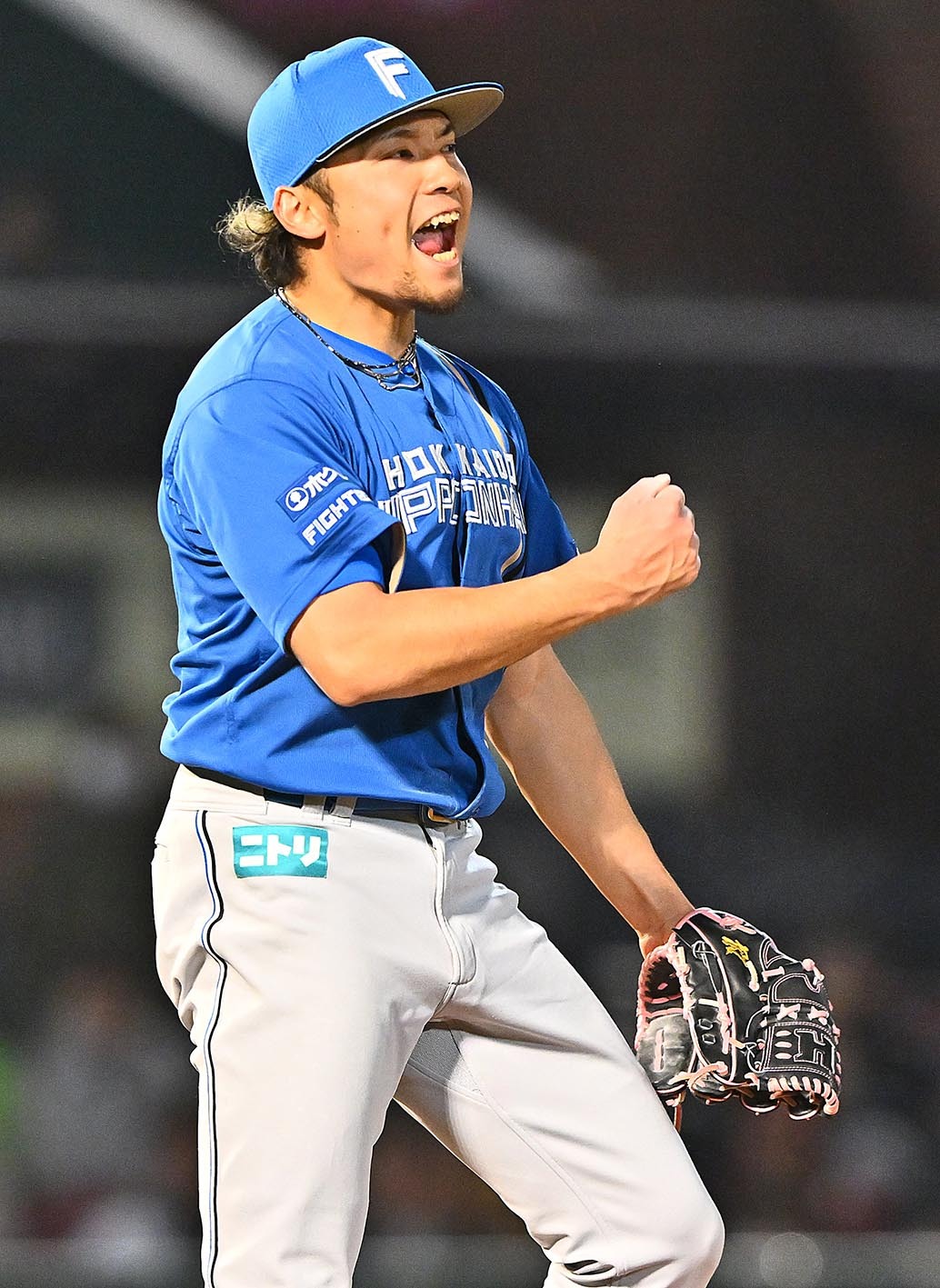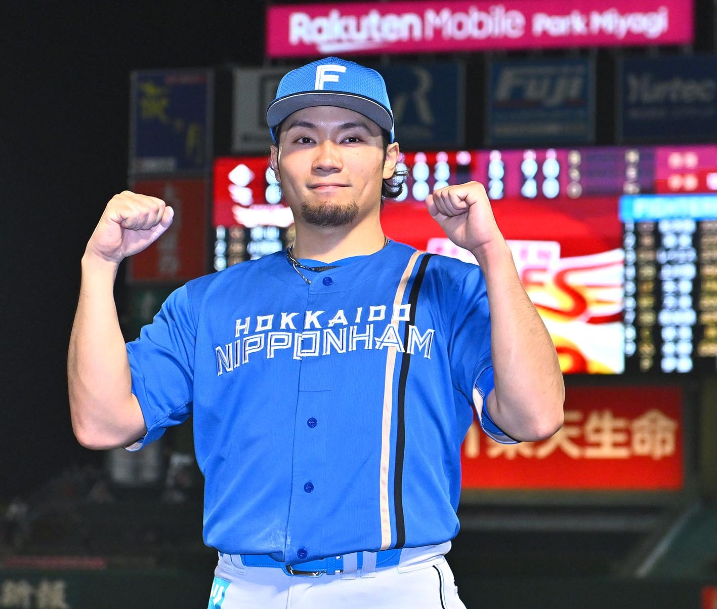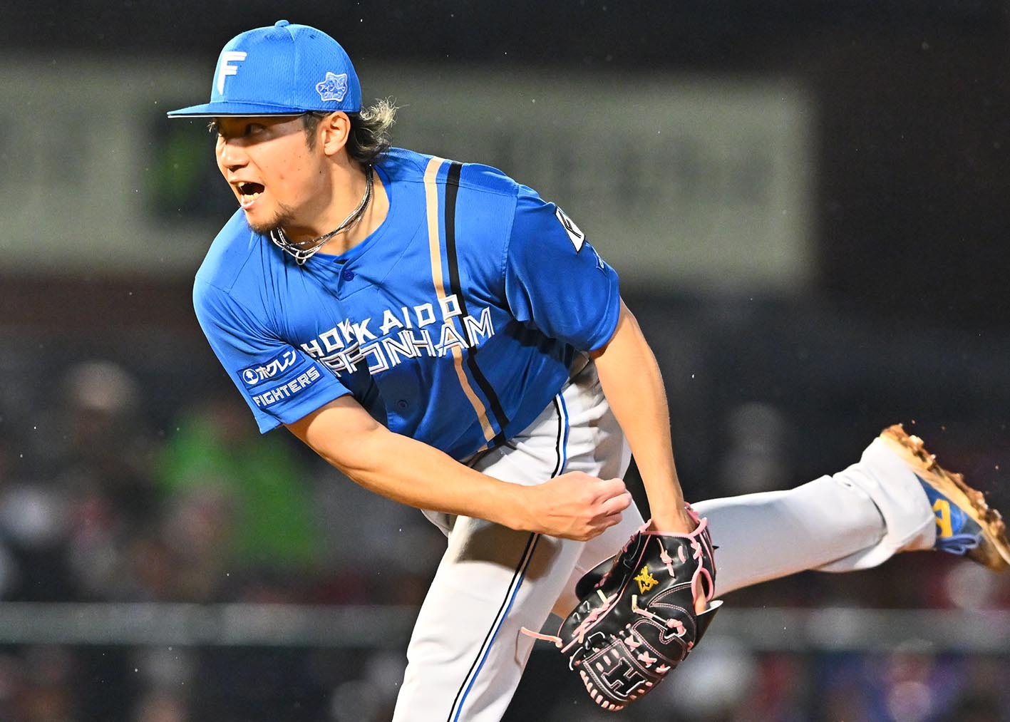 球場表示で出た最速154キロについては「たぶん出ていない。誤表示だと思います」と否定したが、力強いストレートを軸に三振の山を築いた。四回には万波の同点2ランが飛び出し、「すぐ追いついてもらったので、そこでまた集中力がガッと上がって」と勢いに乗っていった。