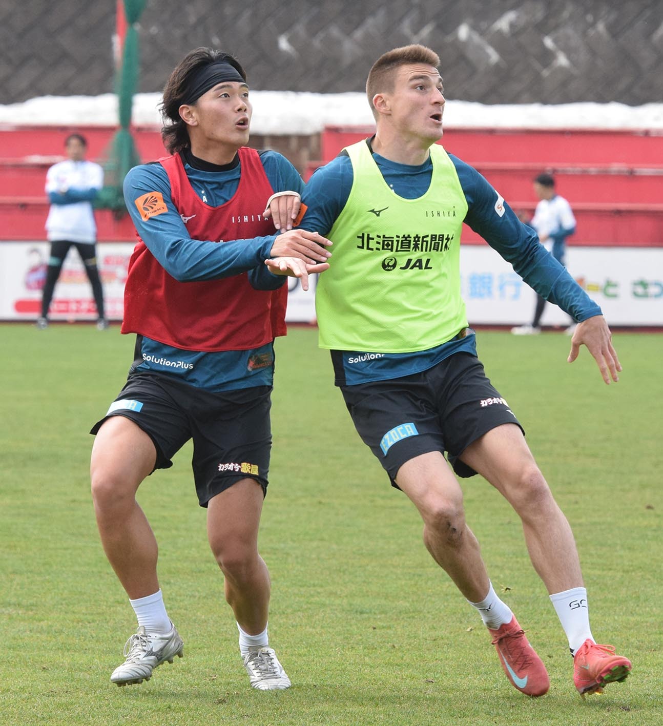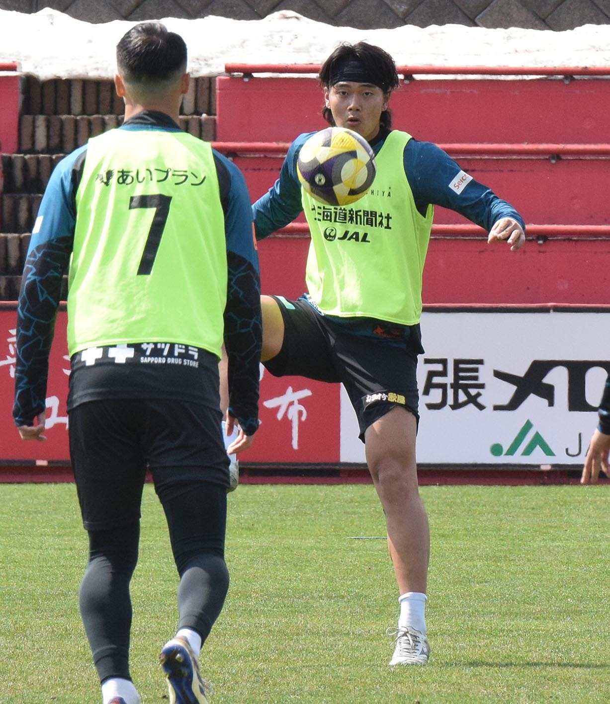 北海道コンサドーレ札幌は9日、札幌市内で第9節・水戸戦(12日14時キックオフ、ケーズデンキスタジアム水戸)へ向けて全体練習を行った。前節の徳島戦で勝利に貢献したDF西野奨太(20)は、2戦連続のクリーンシート達成を目指して気合十分。闘志溢れるプレーを披露し、首脳陣にアピールした。