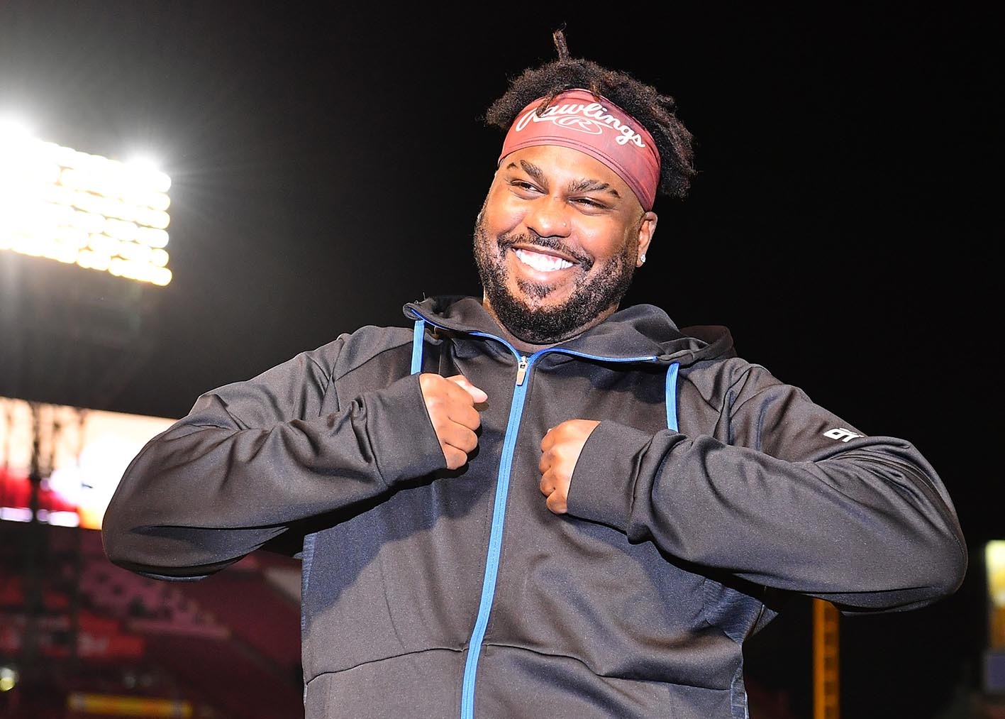 ヒーローインタビュー後、ゴリラポーズを披露するレイエス
