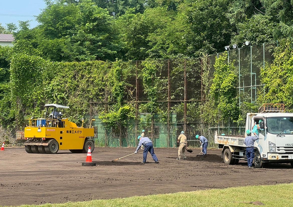 昨夏、土の入れ替え作業が行われたグラウンド=吉田雄人さん提供
