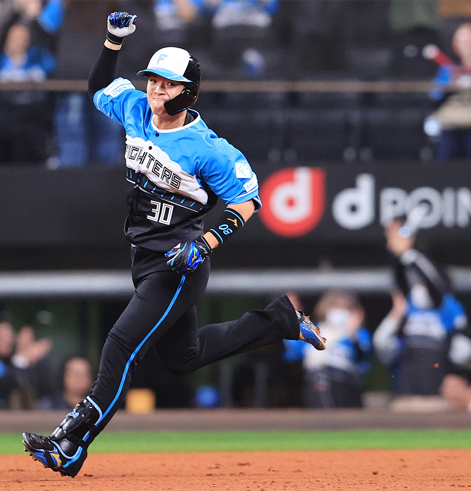 十二回2死二塁、カウント1-2。追い込まれていた郡司が4球目を振り抜くと、右方向に大飛球が舞い上がった。前進守備を敷いていた西武外野陣の頭を越えることを確信した場内から、早々に勝利を祝う歓声が上がった。その打球がライトスタンドに着弾すると、Fファンのボルテージは最高潮に達した。「前進(守備)だったので、外野の頭を越えろと思いながら走っていましたけど、意外と飛びました」と、自身の予想を超えるサヨナラアーチを放ったヒーローは、チームメートたちから手荒い祝福を笑顔で浴びた。