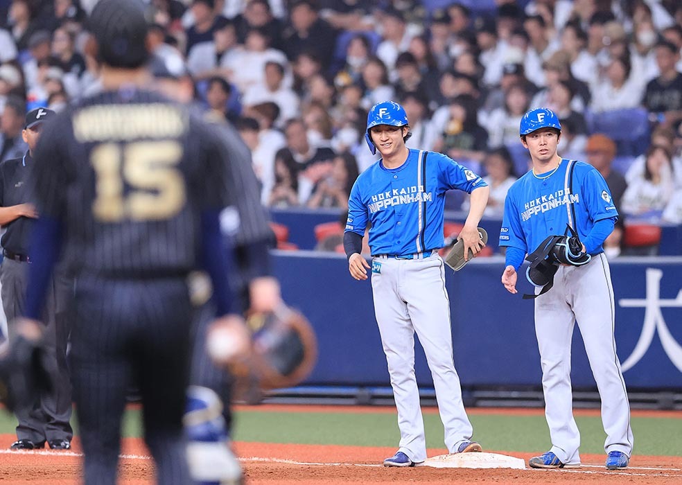 ベンチスタートになった万波に代わって右翼を任され、中軸でいきなり先発起用された。意気に感じていた。1点を追った五回1死一、二塁で右前にはじき返して同点。一塁で両手をパンと叩き、沸き上がるベンチの仲間と一緒に喜びを共有した。