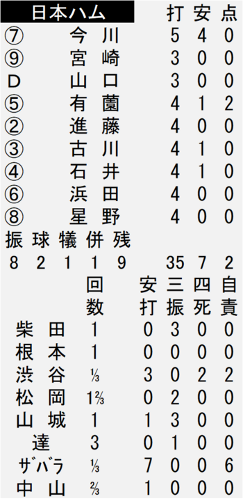 2-2の九回に7番手で登板したアニュラス・ザバラ投手(28)が誤算だった。先頭から6連打を浴びて4失点。さらに内野安打を許し、再び満塁とされ、1番の坂口に左犠飛を許した。ここで中山晶量投手(26)が8番手でマウンドに上がるも、相手の勢いを止められず、1点を奪われた。
