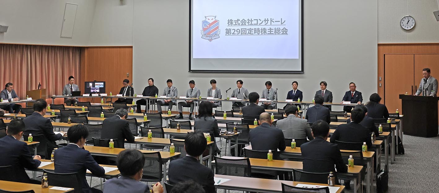 北海道コンサドーレ札幌を運営する株式会社コンサドーレは24日、札幌市内で株主総会を開き、第29期(2024年2月1日から25年1月31日まで)の決算を承認し、2億7287万6000円の純損失を計上した。純資産合計は今年1月に石屋製菓が6億円を追加出資したことで3億3097万2000円と大幅増。すでに始まっている今期は、2026-27年シーズンから始まる秋春制移行に伴い26年6月まで延長し、4.4億円の赤字予算を組んだ。また、13人の役員を6人に削減する議案も承認され、元DAZN日本法人取締役のディーン・サドラー氏(60)が新たな役員に就任した。