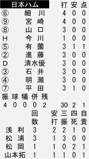 打線はわずか2安打と湿った。七回に有薗が先制の7号ソロを放ったが、勝利には結び付かなかった。