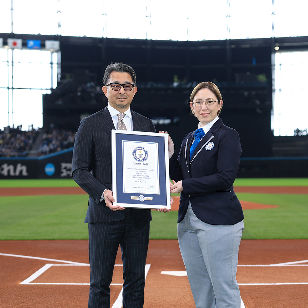 「今回はスタジアムにおける、最大の連続したガラスファサードとなりますので、連続した状態での大きさが世界一と認定させていただきました」