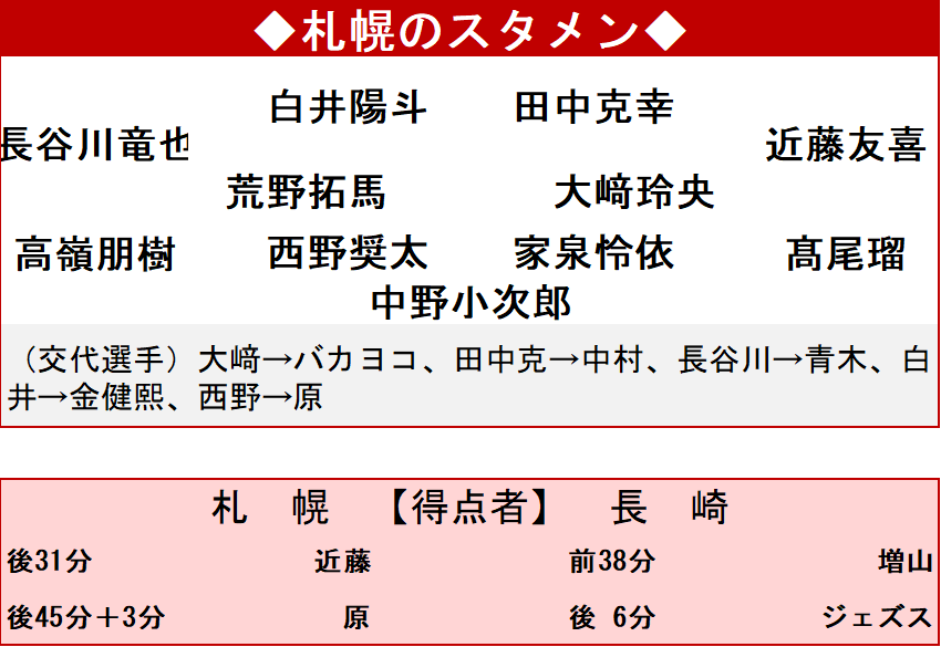 さらに札幌は同33分に負傷したDF西野奨太(20)に代わってMF原康介(19)を投入。高嶺がCBに落ち、ボランチに青木、原は左サイドハーフに入った。