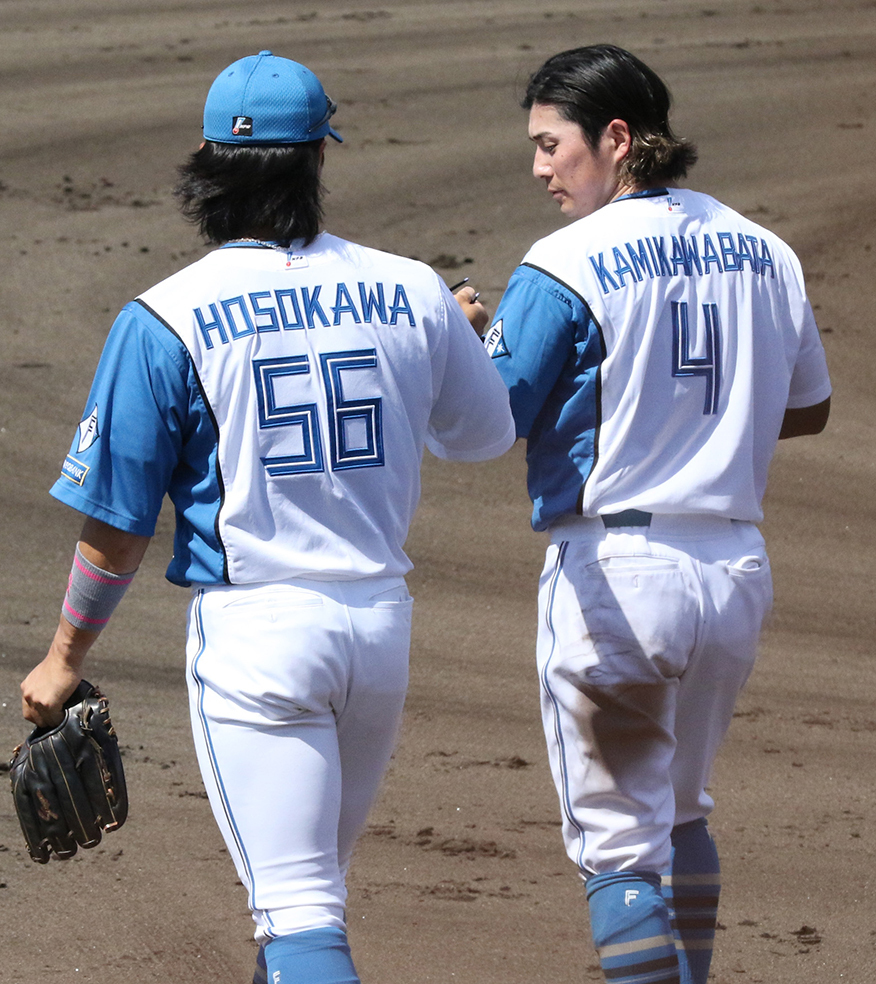 ともに長髪で、ユニホームの着こなしはオールドスタイル。髪をなびかせながら、1軍の舞台で二遊間を守るのを見てみたいと思った。