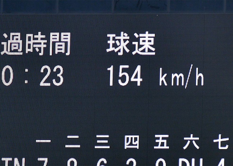 力感なく投じられた直球でも、150キロの大台を優に超えていた。一回、いきなり3者連続三振を奪う完璧な立ち上がり。そして二回、連続長短打などで無死二、三塁とピンチを背負うと、一気にギアを上げた。三振、一ゴロで2死までこぎつけると、続く打者には直球を3球続けて見逃し三振を奪ってみせた。