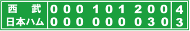 打線は昨年の奪三振王・今井達也投手(26)の前に4安打10三振と得点を奪えず。今井が降板した八回、フランミル・レイエス外野手(29)が左中間スタンド上段に4号3ランを叩き込んで1点差に迫ったが、反撃はここまで。1点差で逃げ切られた。