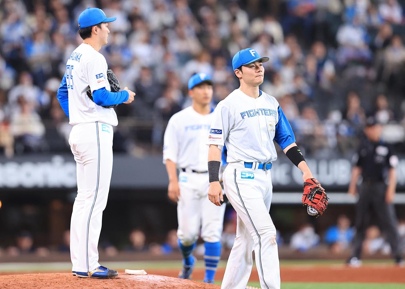 七回にマウンドに上がった2番手の柳川大晟投手(21)は2安打1四球に清宮幸太郎一塁手(25)の失策も絡み、2失点してリードを広げられた。
