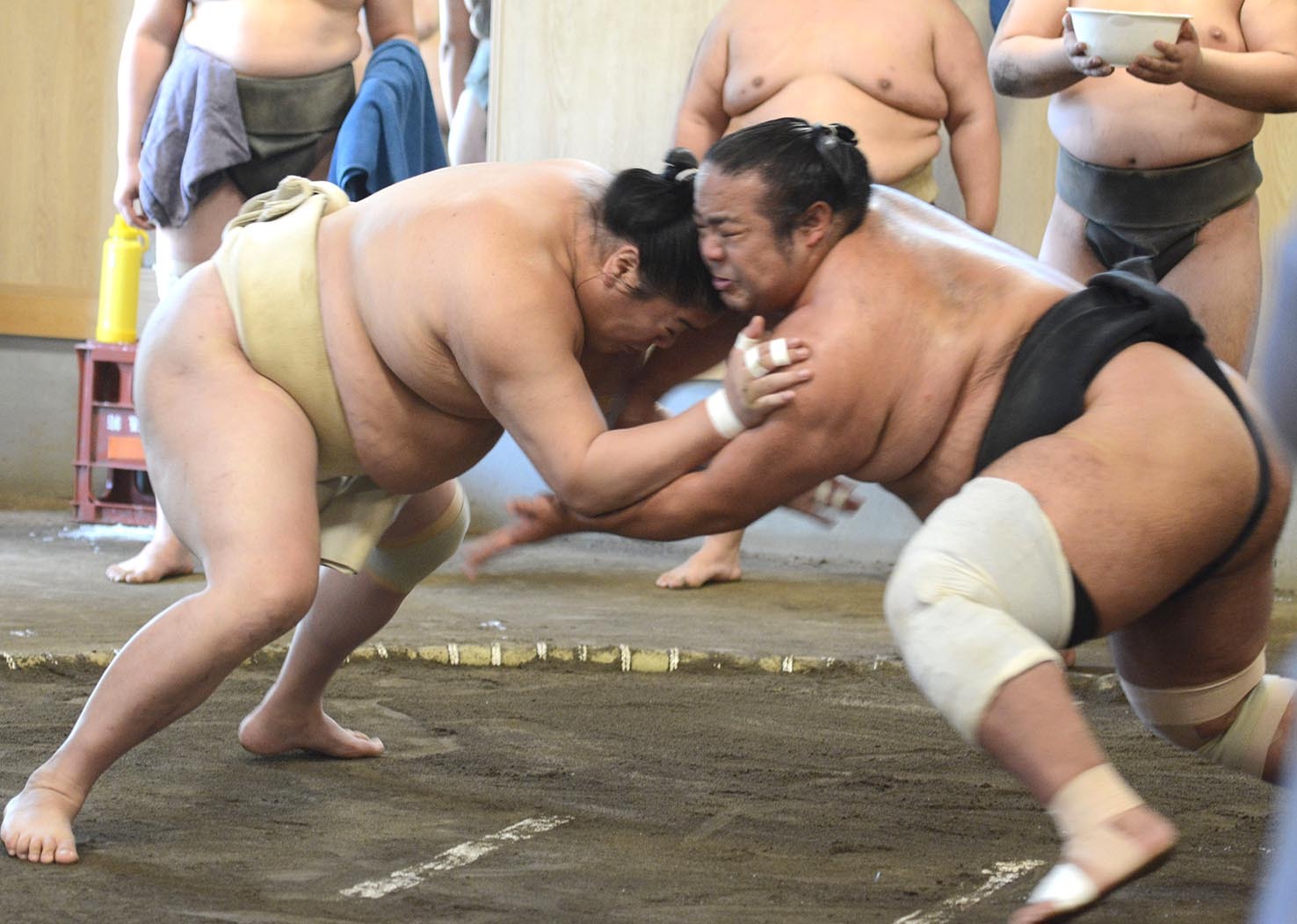 夏場所へ向け、稽古に励む一山本=撮影・近藤裕介