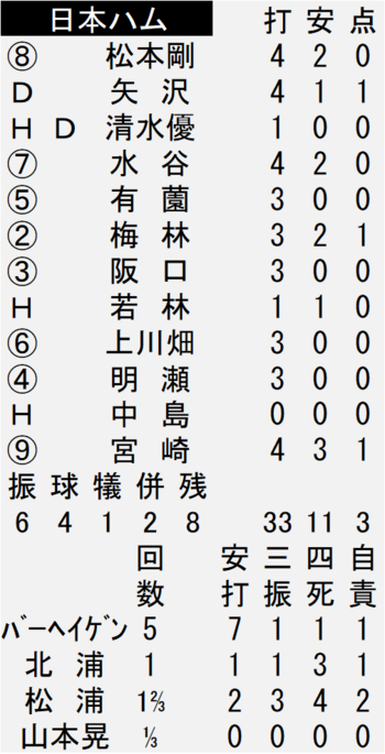 ▼▼▼日本ハムの投打成績は以下▼▼▼