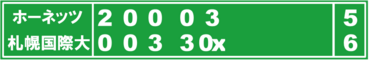 ▽ホーネッツ・レディース5-6x札幌国際大 ※五回雨天コールドゲーム