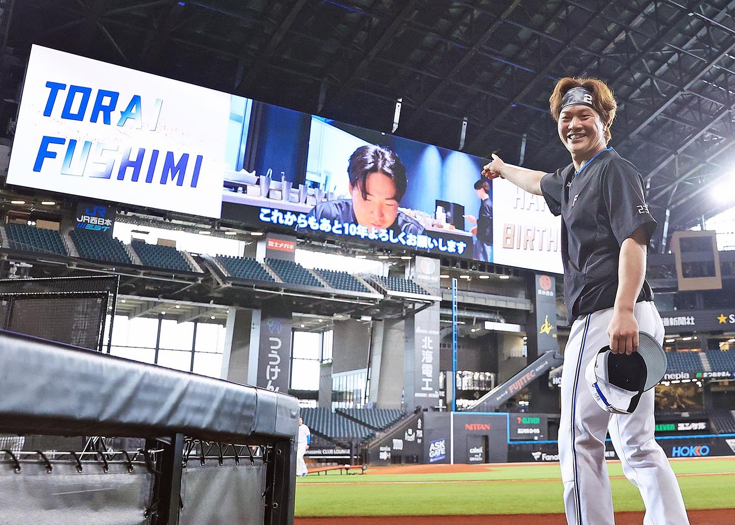 選手会長・松本剛の「寅威さんのように周りを見られるすてきな大人になりたいと思います」と真面目なコメントもあったが、玉井の「38歳、おめでとうございます」といったイジリが続出。バッテリーを組む伊藤は「早めに誕プレ買わないと2カ月くらいぐちぐち言われるので早めに買っておきます(笑)」。昨年は7月にTシャツをプレゼントしたが、今年は「もう頼んであります」とのことだった。