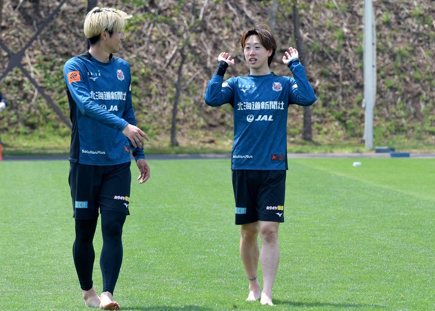宮の沢白い恋人サッカー場の芝生養生期間に伴い、チームはこの日から白旗山競技場に練習の場を移した。フレッシュな気持ちでトレーニングに臨んだ選手たちは、2対2の対人戦や6対6のミニゲームで精力的に汗を流し、次節への準備を進めた。