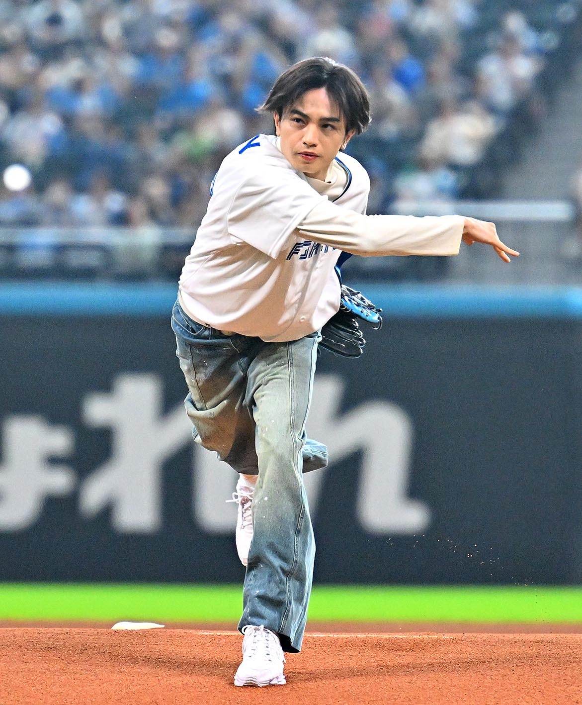 アーティスト・俳優として活躍する中島健人(31)がオリックス戦(エスコン)の試合前に行われたファーストピッチセレモニーに登場した。中島の大ファンであることを公言する田宮裕涼捕手(24)のミットを目がけ、ワンバウンド投球を披露。投球後には2人でハグし、多くのファンが詰めかけた場内を沸かせた。セレモニーの模様、一問一答は以下の通り。