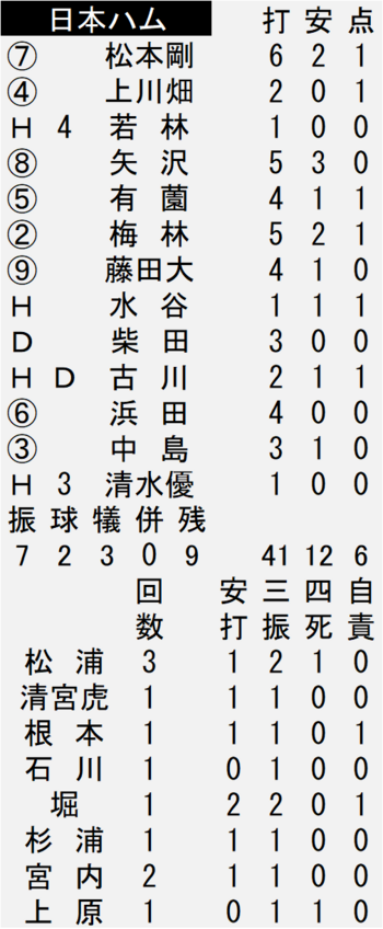 松本剛がサヨナラ打 先発の松浦が3回無失点