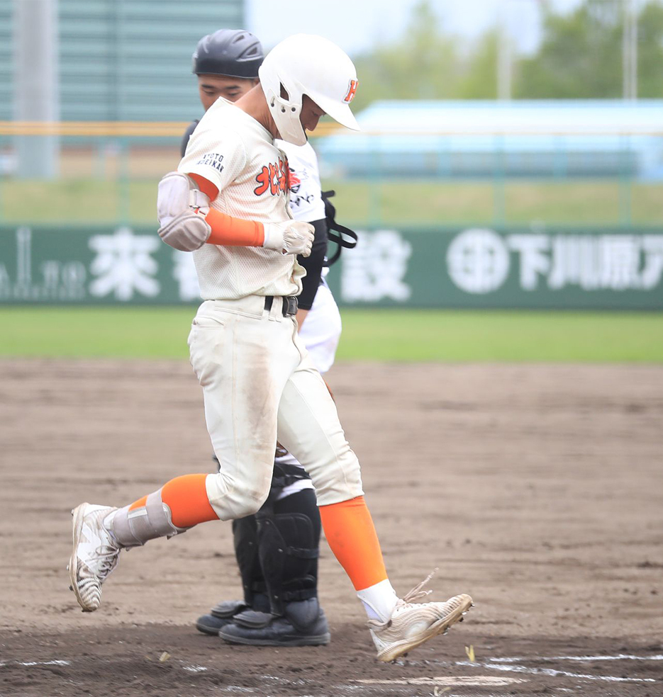 1点差に追い上げられた直後の六回2死一、二塁。この回からマウンドに上がった鵡川のエース住友脩杏投手(3年)の内角に入ってきた甘い直球をフルスイングすると、右翼ポール際の芝生席へ運んだ。公式戦初の本塁打に「切れるかと思ったが、ホームランになってうれしかったです。普通にぱっと何も考えずに振ったら、入りました」。ガッツポーズしながら、ダイヤモンドを1周した。