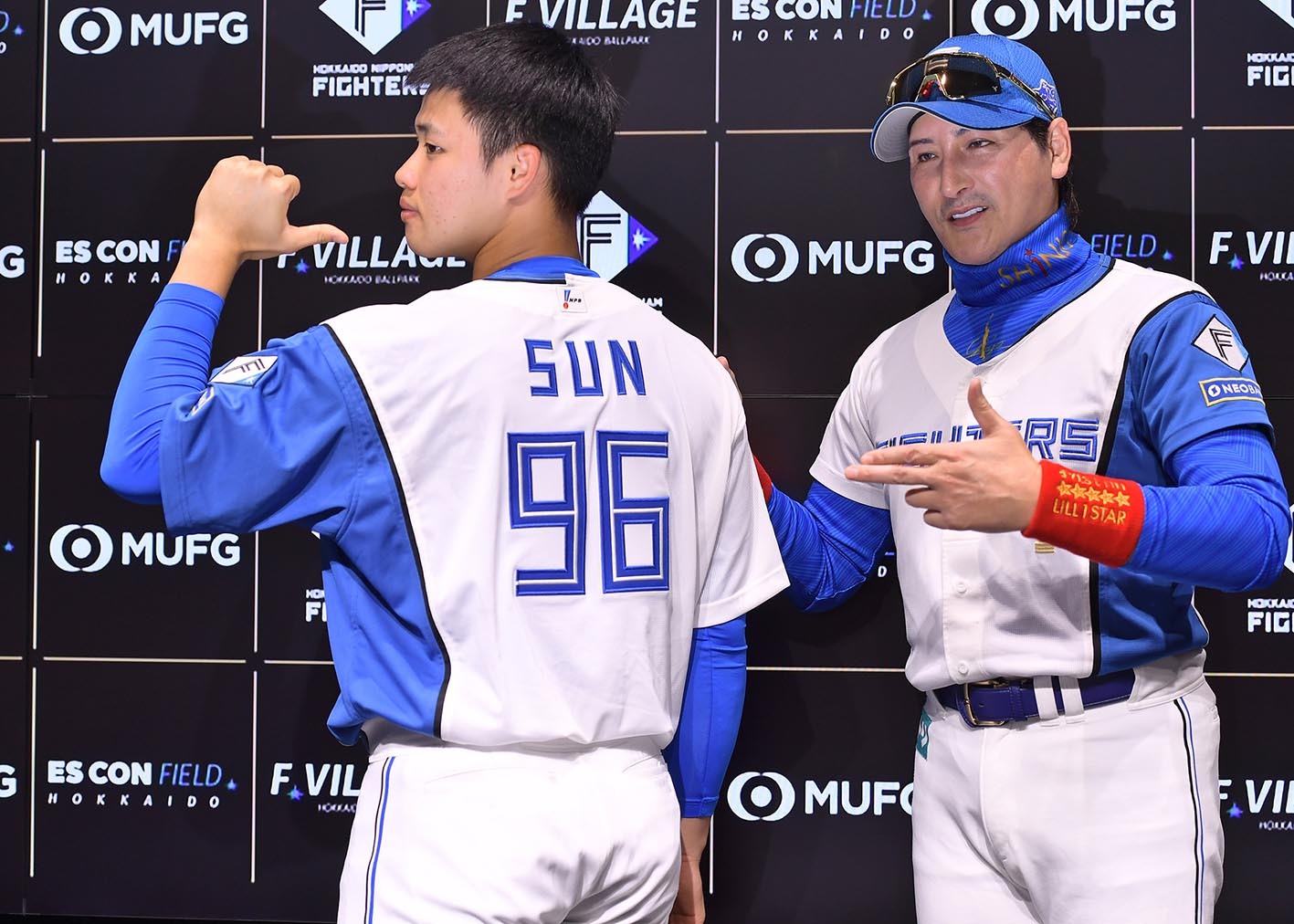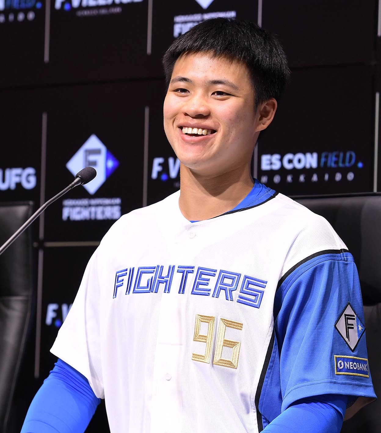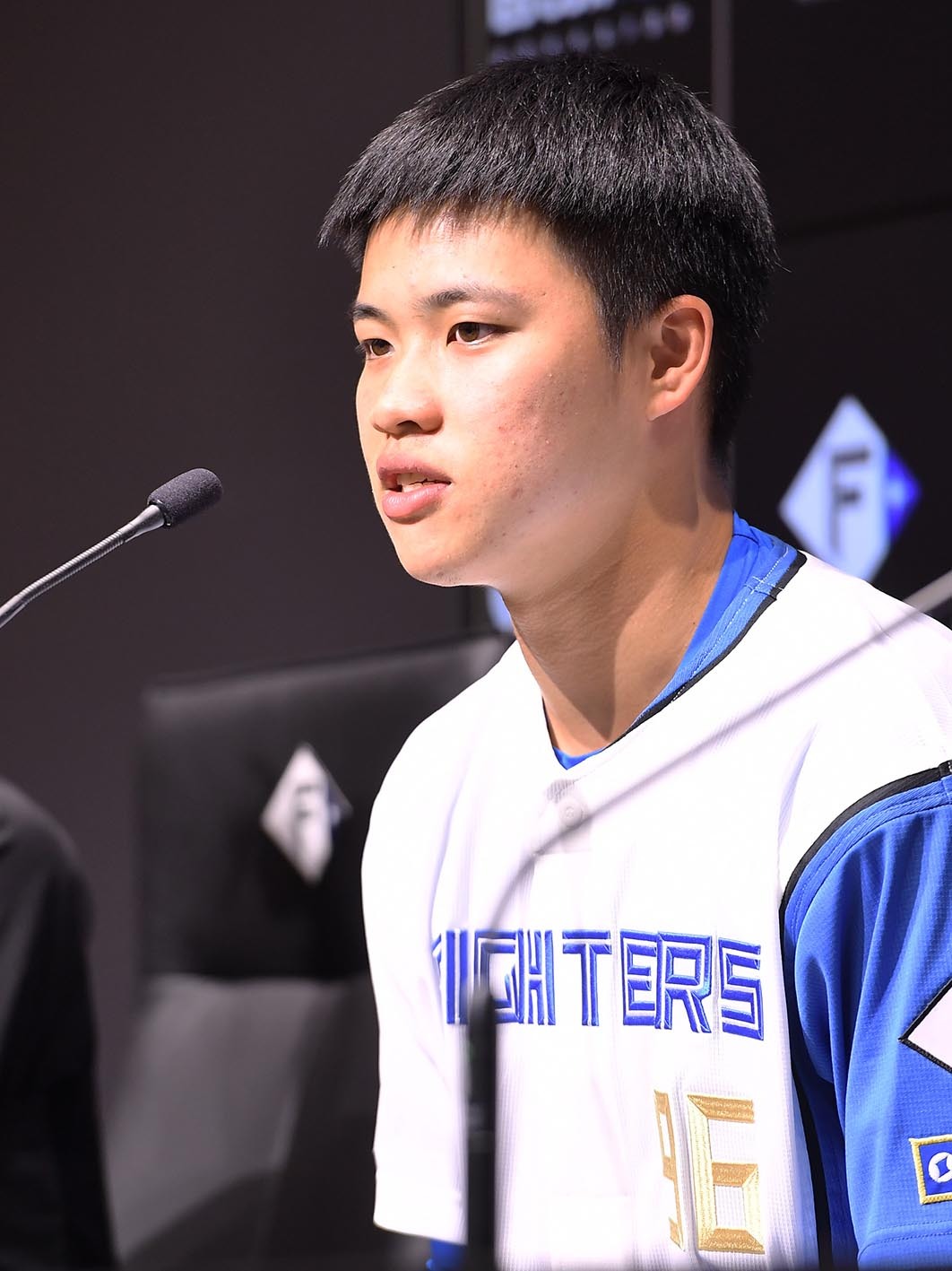 「皆さん、こんにちは。私は日本ハムファイターズ、背番号96番の孫易磊です。よろしくお願いします」