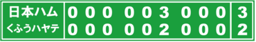 日本ハム2軍は敵地で、くふうハヤテと対戦し、3-2で勝利した。