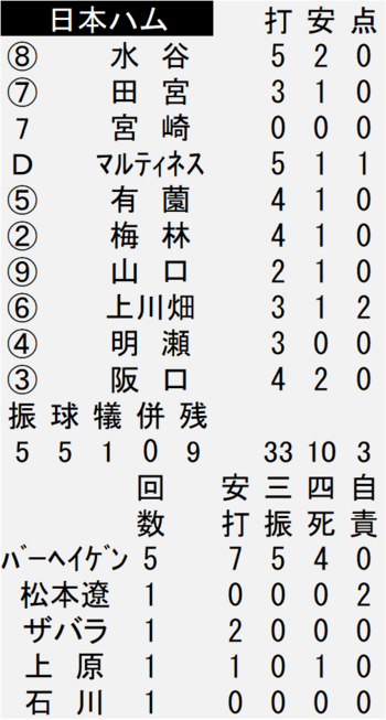 ▼▼▼日本ハムの投打成績は以下▼▼▼