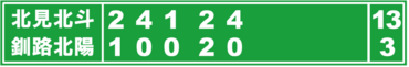 釧路北陽も一回に、1番の杉本聡真外野手(2年)が左中間への二塁打で出塁し、3番・本間一颯(いぶき)内野手の二ゴロの間に1点返したが、先発マウンドに上がった関端優希投手(3年)が3回7失点(自責6)と、北見北斗打線に捕まった。