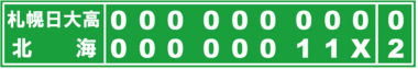 昨年の春と夏の甲子園出場校同士の対戦は、春の全道3連覇を狙う北海が2-0で勝利した。打っては、全道大会から背番号「7」に昇格した1番・石田稀代和左翼手(2年)が0-0の七回1死二塁で先制の中前適時打。投げては、先発した松田収司(3年)ら4投手が被安打3の完封リレーと、春の全道3連覇へ好発進した。北海は29日の2回戦で、今春の選抜甲子園出場の東海大札幌高と対戦する。