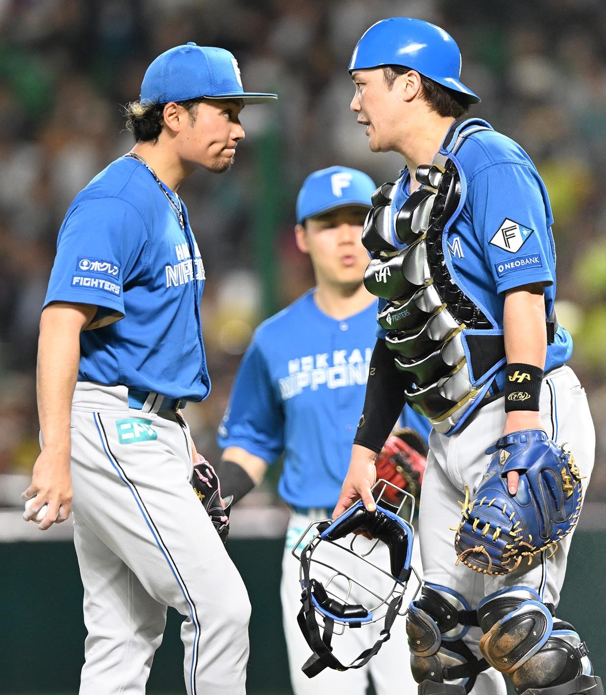 この日、攻守で支えてくれたのが、女房役の伏見だった。五回、清宮の先制アーチが飛び出した直後に、貴重な追加点となる中前適時打。2―2の八回には先頭で左翼線二塁打を放ち、勝ち越しを呼び込んだ。