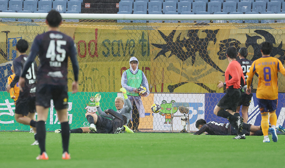 札幌はボール保持率は高いものの、フィニッシュまで届かない。そんな膠着状態で迎えた前半終了間際の45分。仙台のMF郷家がゴール正面でトラップからの右足シュート。GK菅野孝憲(41)の股を抜かれ、先制点を決められた。その直前に、仙台FW宮崎の強烈シュートを菅野が止めていただけに、守護神を責められなかった。