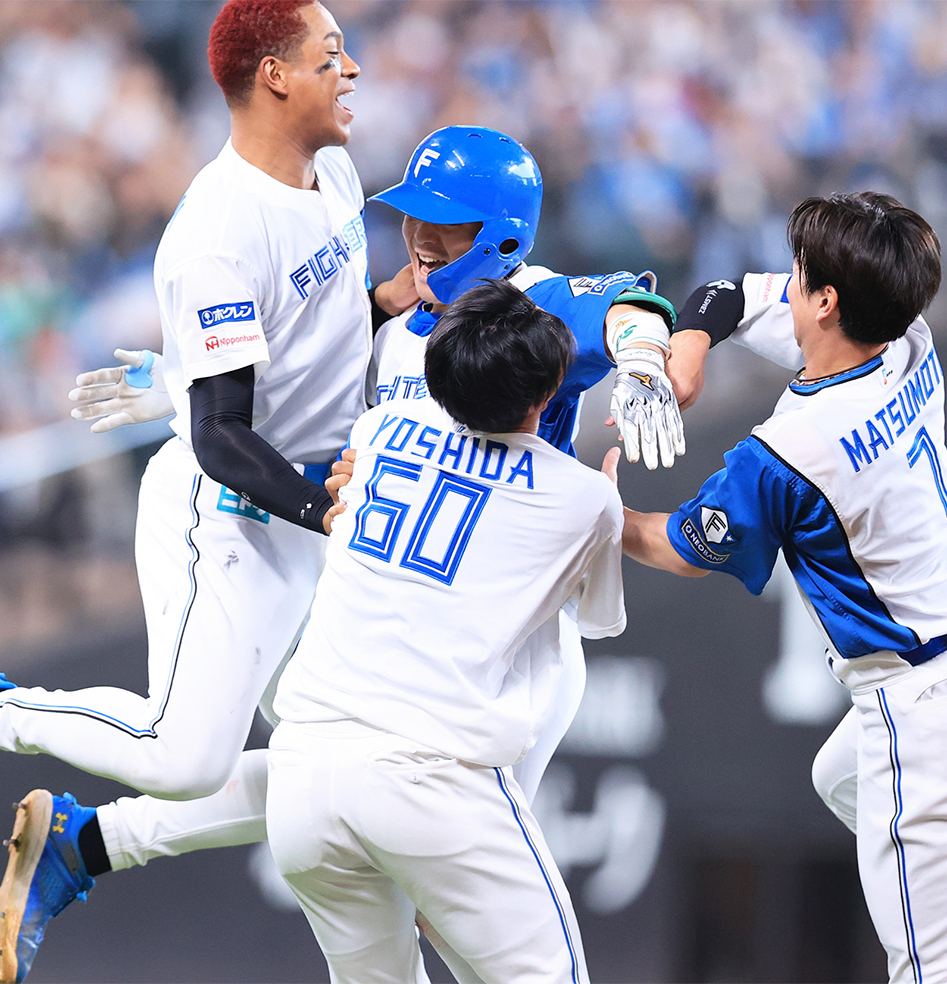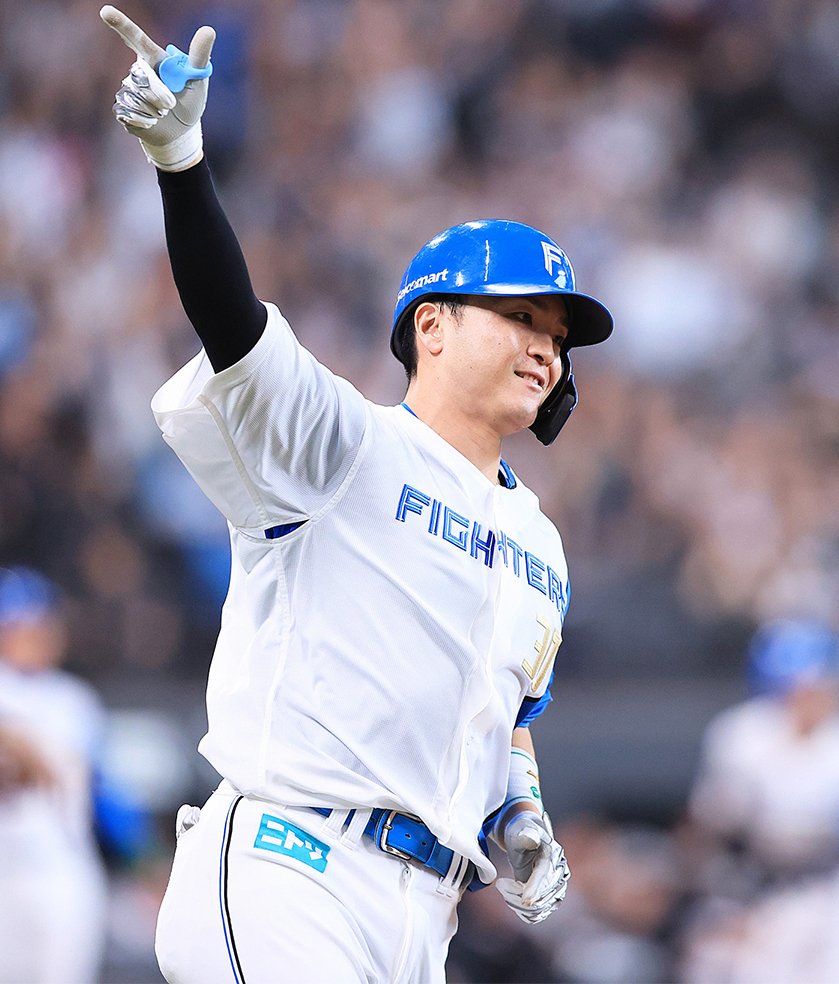 「めちゃくちゃうれしいですよ。僕が打ったことによってみんなが喜んでくれるのが野球選手としてうれしいですし、だいたい最初に駆け寄ってくるのは(清宮)幸太郎なんですけど。吹っ飛ばされないようにこっちも体幹を(笑)。幸太郎とかレイエスがすごい勢いで来る。体幹を入れてやっています(笑)」