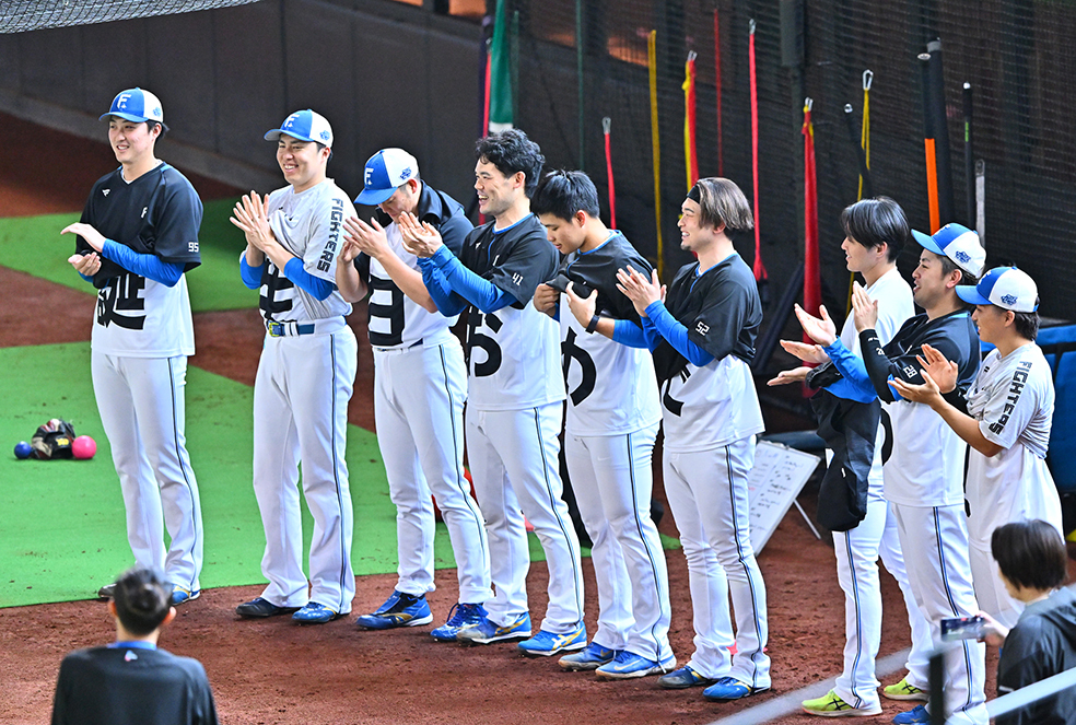 午前9時45分ごろ。ロッカーから出てきた宮西がベンチを通り、いつものように練習拠点となるセンターへ向かって行った。先に待機していた救援陣が、慌てて横並びで整列。練習着を脱いでTシャツ姿になると、1文字ずつ担当する形で「誕生日おめでとう!」の祝福メッセージが完成した。
