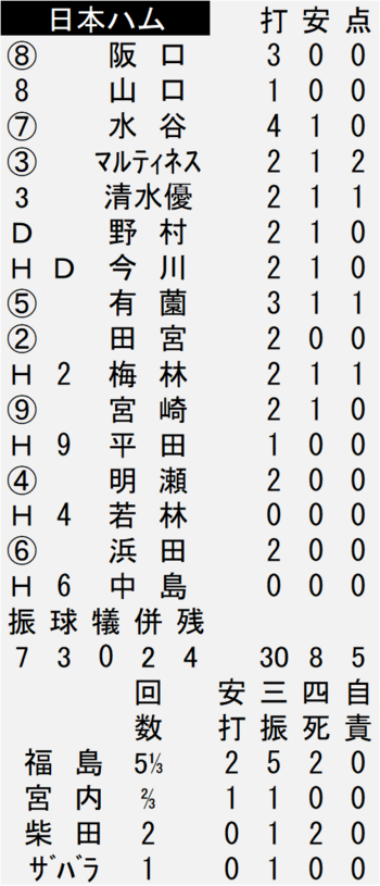 ▼▼▼日本ハムの投打成績は以下▼▼▼