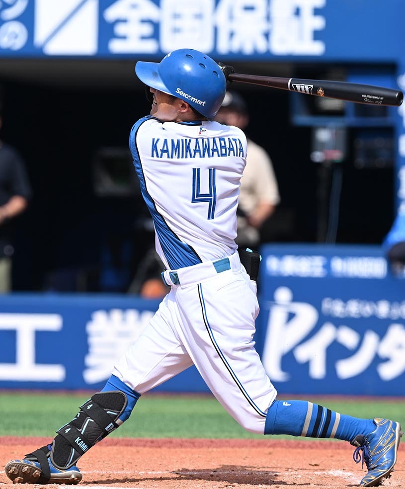 日本ハムの上川畑大悟内野手(28)が「9番・二塁」で先発出場。四回の第2打席で、あわやホームランというフェンス直撃の二塁打を放った。