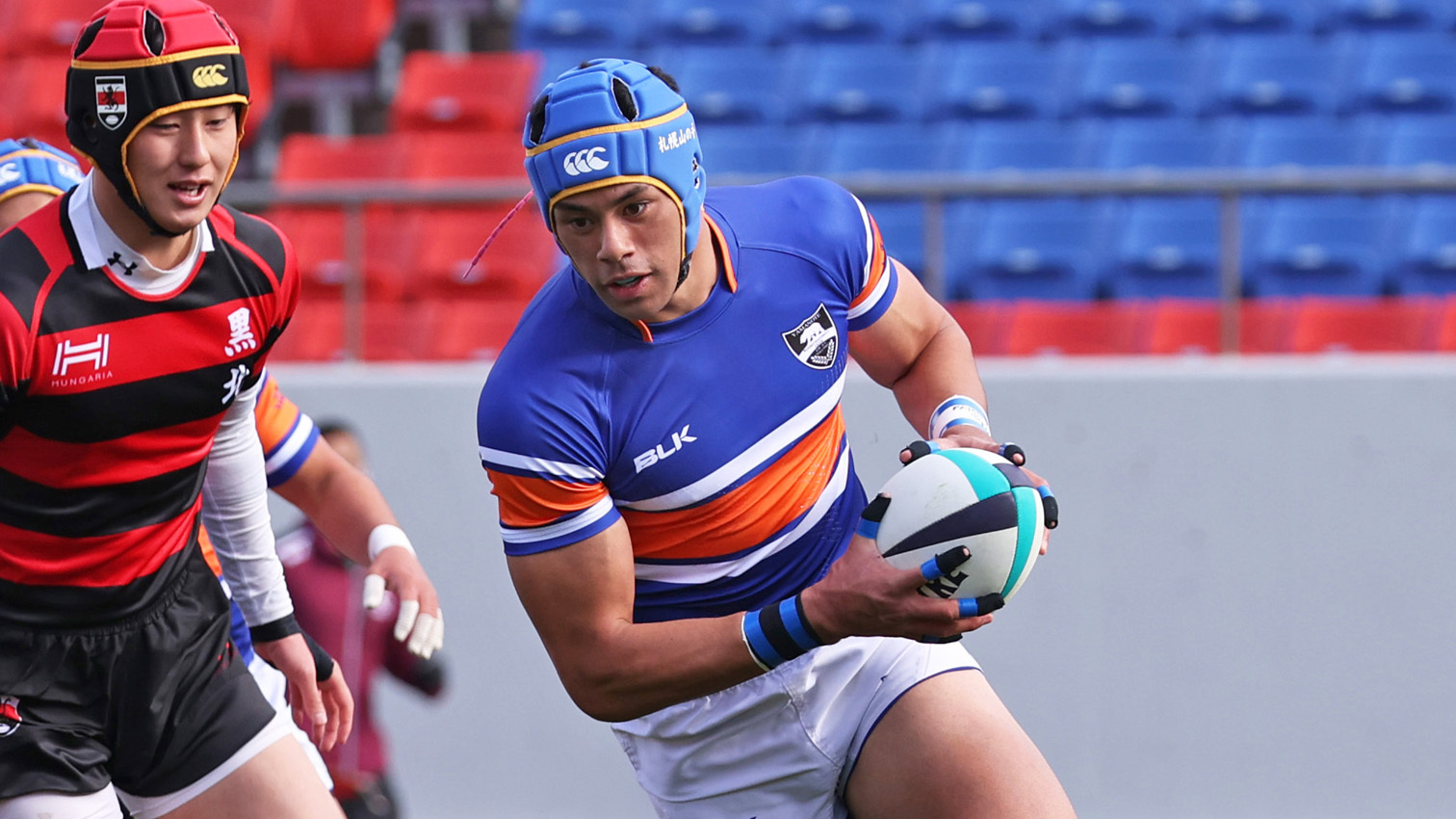 大津緑洋の強力フォワード陣に屈した。前半4分、中央を突破されて先制トライを奪われると、立て続けに失点を許した。同24分、相手陣内の残り15メートル付近から、フッカー水口遥太(2年)のキックパスをWTB能祖旺佑主将(3年)が受けてトライ。さらにもう1トライを奪って一矢報いたが、最後は大差で敗れた。昨年のノートライから前進も「相手の力が上だった」と能祖主将。主力の多くは2年生で、水口は「また来年、リベンジさせてもらいたい」と巻き返しを誓った。