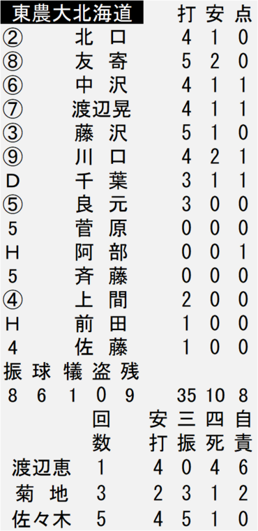 ▼▼▼東農大北海道の投打成績、監督コメントは以下▼▼▼