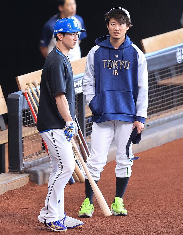 日本ハムの松本剛外野手(31)がヤクルト・西川遥輝外野手(33)と再会。練習中の合間に言葉を交わし、「久々に会った気がしないです」と、はにかんだ。