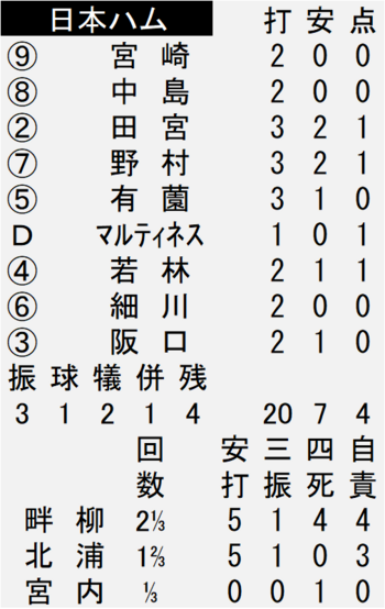 ▼▼▼日本ハムの投打成績は以下▼▼▼