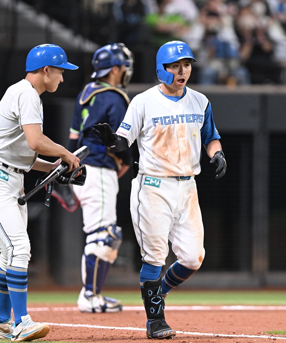 打線は効果的に加点した。0-1の一回、1死から2番の五十幡亮汰外野手(26)が三塁打で出塁すると、続く清宮幸太郎外野手(26)がきっちり左犠飛を打ち上げて同点。1-1の三回には足技で勝ち越した。1死一、三塁で、一走の五十幡がスタートを切り、送球間に三走の進藤勇也捕手(23)がホームインした。2-1の四回には2死満塁で8番の上川畑大悟内野手(28)が押し出し四球を選んだ。3-1の七回には五十幡の2点三塁打と清宮の左犠飛でダメを押した。